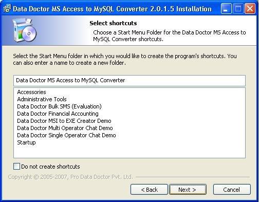 Step3-> On clicking “Next” button, the “Select Shortcut” screen will be appeared: