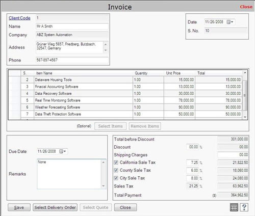 To create invoice, click Sales > Invoice, the screen will be displayed in which you need to select the client to whom you want to create invoice.